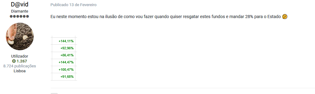 Sabem quem é que não pode beneficiar disso? Os pobres e outros coitadinhos que são obrigados a pagar 28% sobre os rendimentos de capitais. Os tais com quem os burgessos caviares estão sempre tão preocupados da vida..........