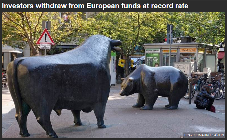 More than €240 billion was redeemed from funds last month, more than twice than in October 2008, the previous monthly record, the data provider said. Bond, equity, and index funds all experienced the highest outflows ever recorded.