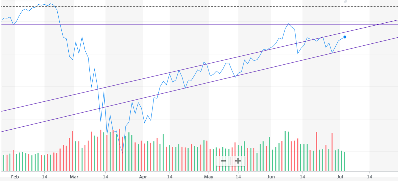 Penso que tudo depende da recuperação dos vários sectores económicos até setembro, em outubro se a economia estiver a mais de 90% (desemprego nos USA abaixo dos 8%), deveremos entrar novamente em bull, senão deve continuar a lateralizar e aguardando. O mercado foi puxado pelo NASDAQ mas parece-me que este já não tem mais para dar se os outros sectores não começarem a vir depressa. Os governos não vão fechar mais a economia e o que se vai passar é encerramentos temporários e localizados.