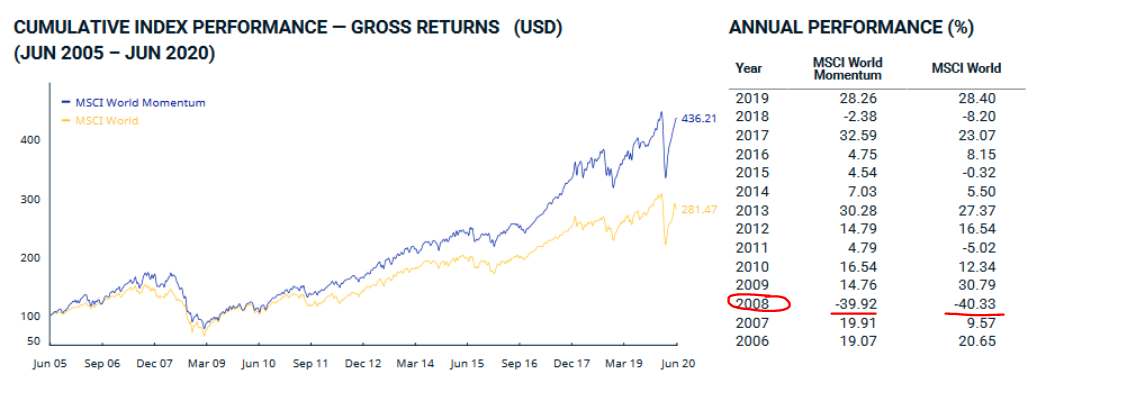 Pessoalmente o que eu quero perceber é o comportamento do Momentum Factor em relação ao MSCI World.