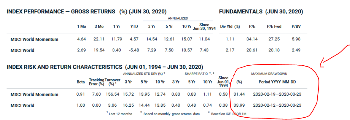 Podem ir aqui e escolham os indíces e os factores e o que quiserem que eu faço uma análise minimamente aceitável onde de certeza vemos que o Max Drawdown do MSCI World não foi em 2020 ?