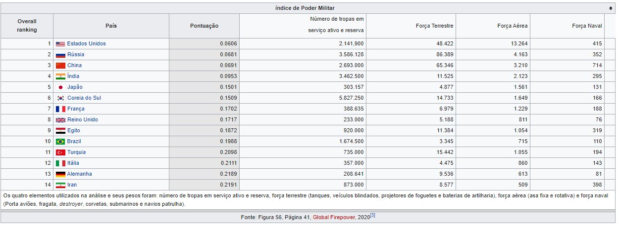 Relativamente ao indice de poder militar, mantenho o meu ponto. Eles teem equipamentos? Sim. Homens? Sim. Tecnologia? Não.