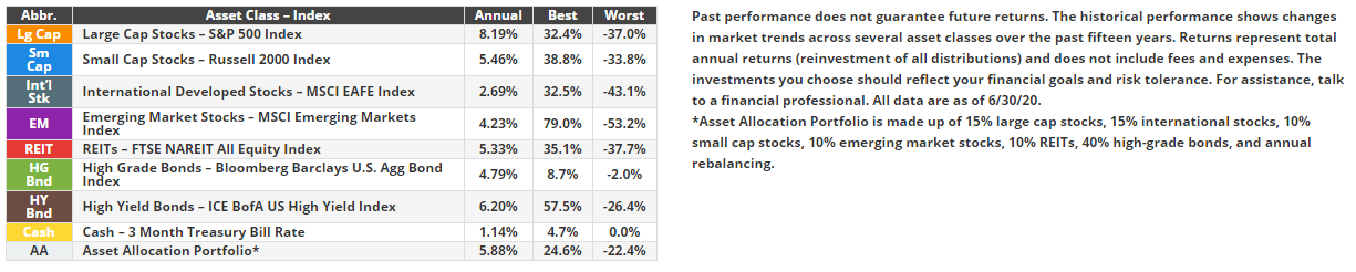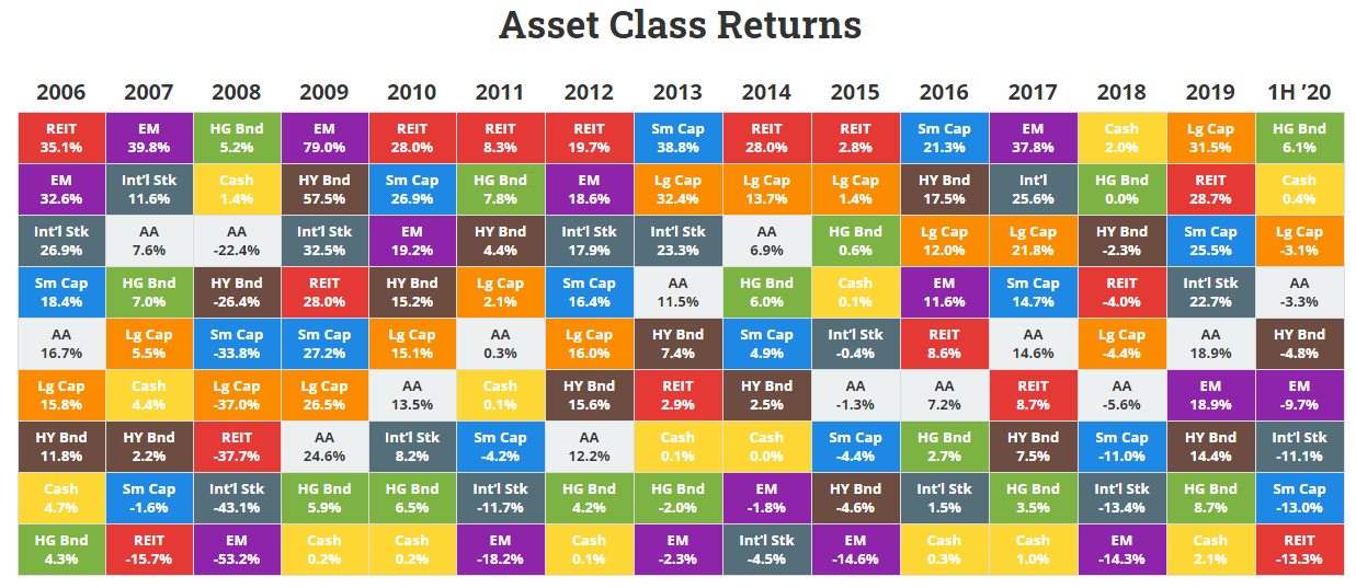 O setor consumer staples, como é habitual, é sempre o setor com menos risco, e quanto aos retornos ajustados ao risco, também costuma ser dos melhores setores. É impressionante o facto de, no período considerado de 13.5 anos, este setor ter o pior ano com apenas -15.4 % de retornos, precisamente no crash de 2008, quando o setor tecnológico teve o pior ano com -43.1 % de retornos (2008), quase o triplo da queda do setor consumer staples.