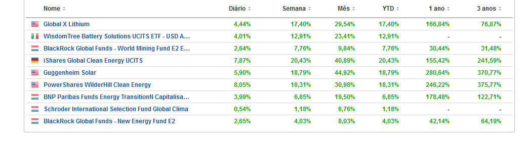 Quanto ao ARKG e outros ETFs da ARK é normal porque estão a recuperar a porrada a sério que levaram no final do ano, sendo que o ARKG foi um dos ETFs que caiu mais então (eu cheguei a ver numa parte de um dia, uma queda > 8%), agora o que já não é tanto normal é a vertigem das novas energias e em especial do solar, apesar da energia solar ser já hoje uma das realidades energéticas mais importante. Acho que aqui há mãos (e liquidez) dos chineses. Também quando o solar corrigir, as quedas diárias também podem ser da ordem dos 10%.