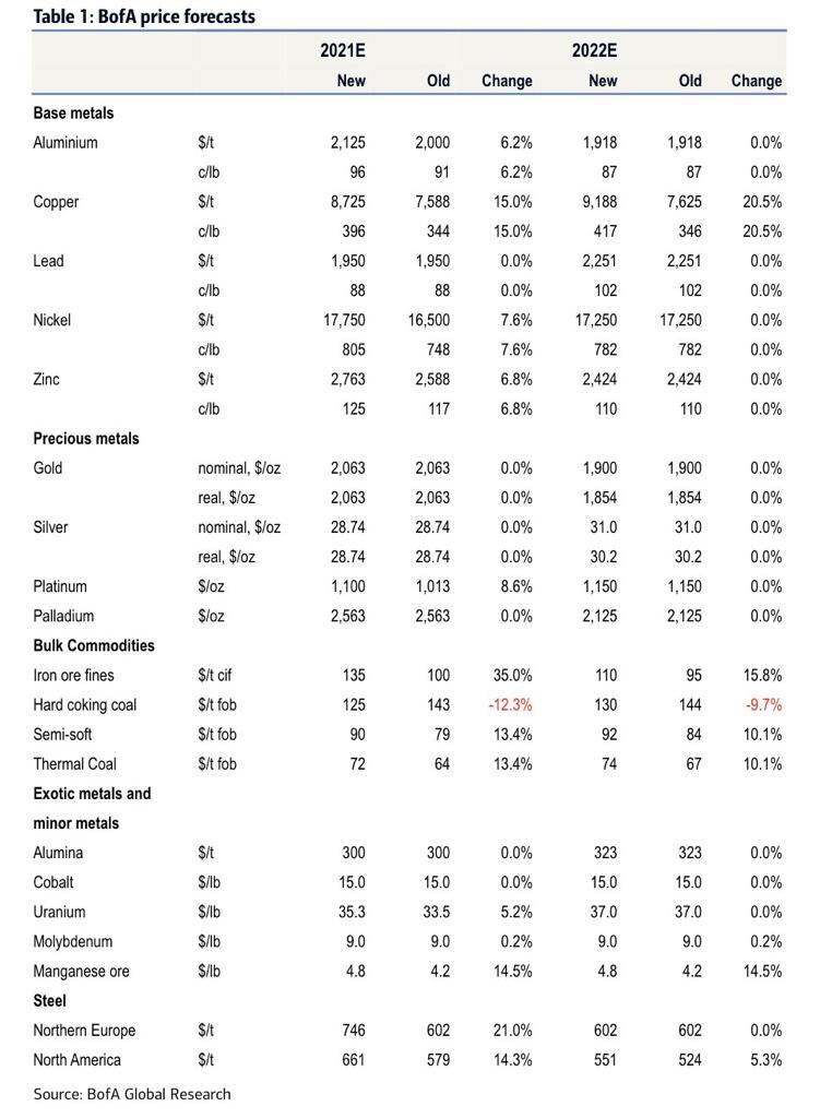 O Bank of America classifica o cobre com +15% que o valor anteriormente referido para 2021...e é nos metais aquele que mesmo para o ano de 2022 continua com tendência ascendente, o que não acontece noutros...😊