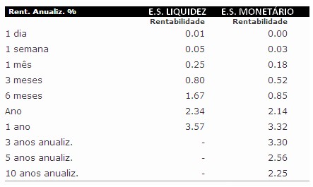 Daí compreender o desabafo da nossa colega de fórum Helena Andrade. Eu próprio - sou o primeiro a reconhecer - tinha um montante aplicado neste ES Liquidez MUITO superior ao que, normalmente, teria num fundo de liquidez. A única razão estava na rendibilidade deste fundo que, comparativamente às outras aplicações de "baixo risco" como DP e CA, permitia antever (digo isto desta forma pois conheço muito bem a máxima dos fundos... "Rentabilidade passada não garante rentabilidade futura") permitia antever, repito, uma melhor remuneração do capital aplicado.
