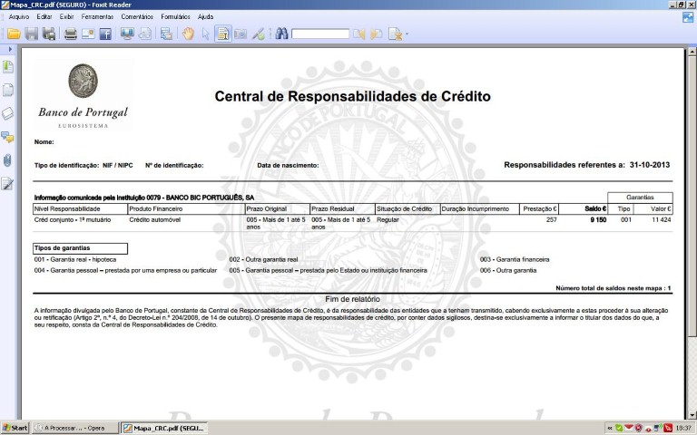 Pelo que observo é um crédito regular e ser pago em 257 prestações, cujo valor em dívida é de 9150€.